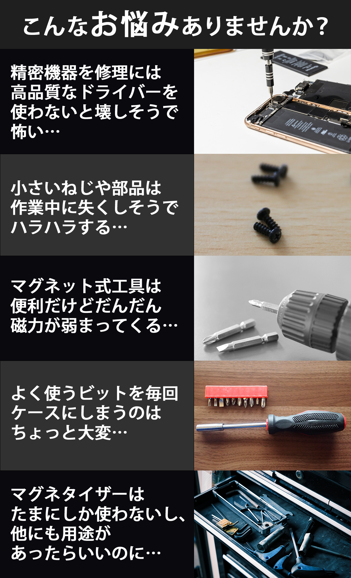 今だけねじがドライバーにくっついてほしい!そんな作業にもぴったりです!