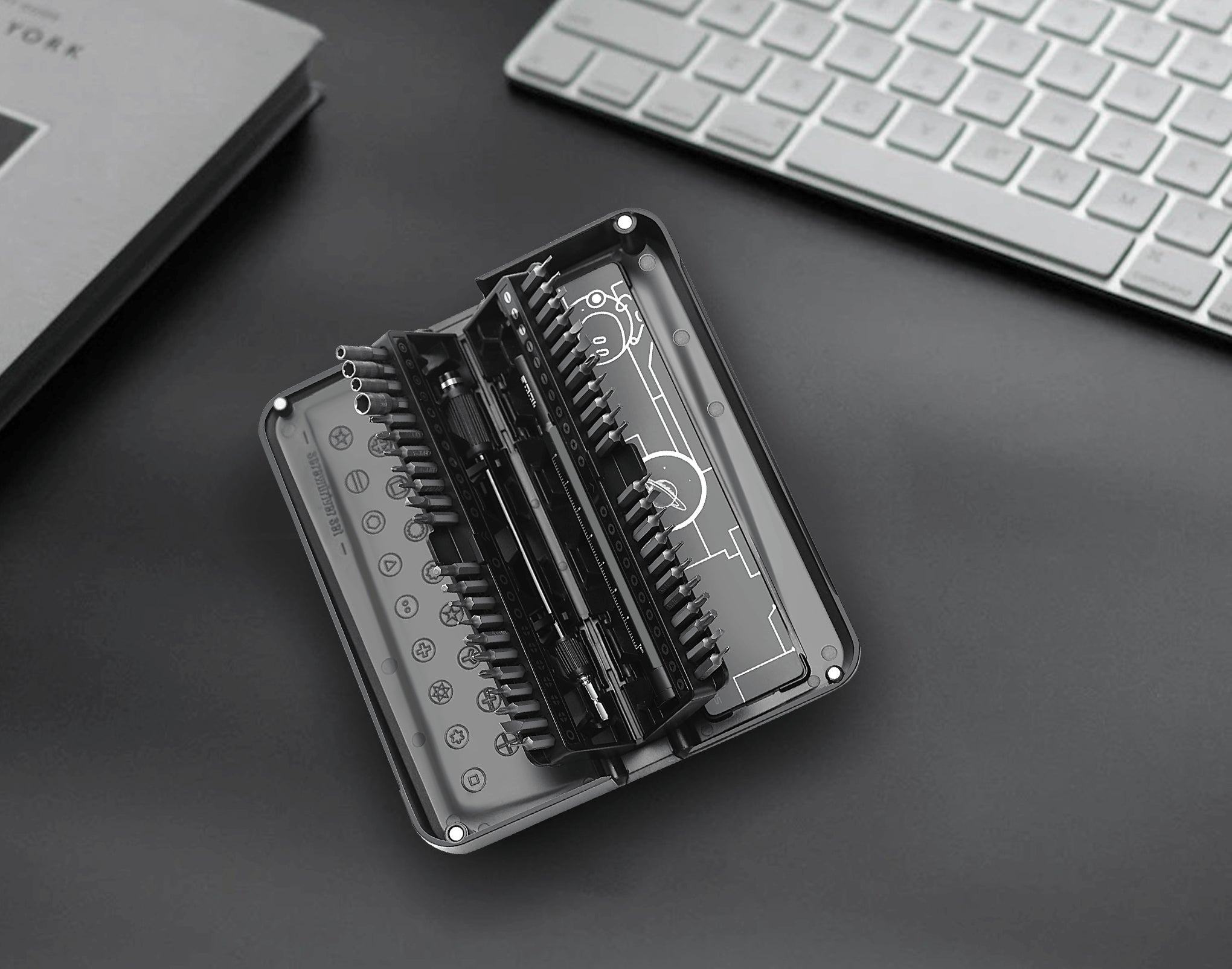 まず、このセットの最も素晴らしい特徴の一つは、セットには精密ねじ用マグネットパッドが含まれており、ビットが作業中に散らばったりなくなったりすることを防ぎます。このマグネットパッドはケースに収納できるため、持ち運び時にも便利です。