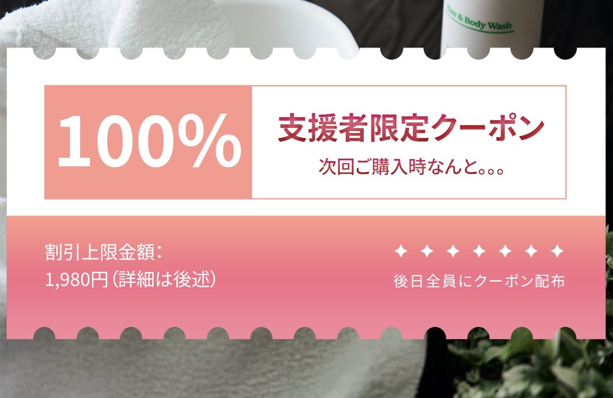 ※支援者様へのクーポン送付時に明記させていただきますので、ご安心ください。