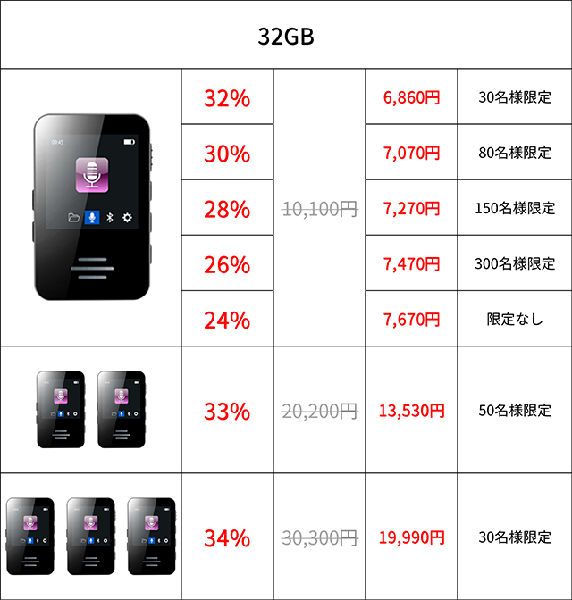 ※保存容量:デフォルト設定である512kbpsの場合、32GB:144時間、64GB:288時間です。