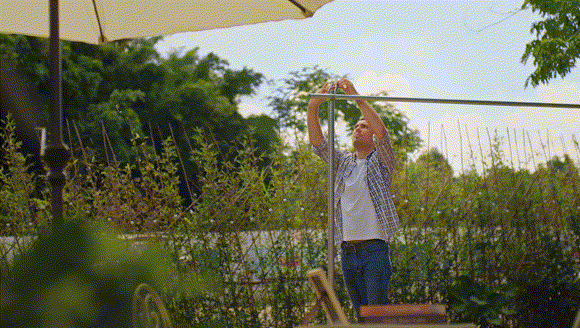 「Syinno SE」 はガーデンパラソルを簡単に木やフェンスに取り付けられます。