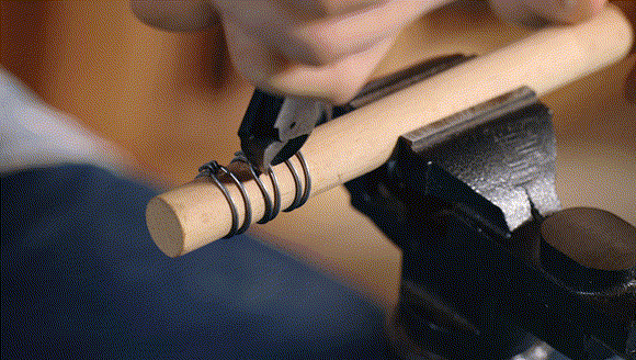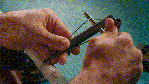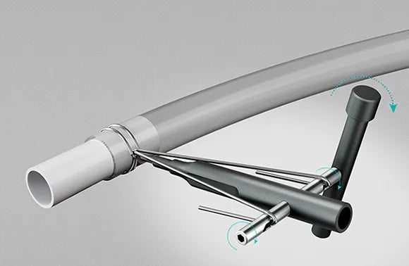 「Syinno SE」 で結束する場合、針金をパーツの溝に差し込み、隣のハンドルを回転させると、針金がだんだん締め込まれて行きます。力学に基づいた革新的なレバー機構により、手間をかけずにしっかり針金をきつく締め付けることが可能。