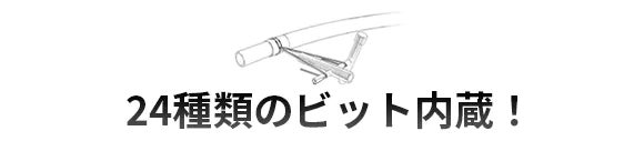「Syinno SE」にはパソコンの分解から大工まで幅広く使える24種類のビットが収納ケースと共に付属しています。さらに、ビットの取り付けも着脱の便利なマグネット式を採用。ハンドルの先端に押し込むだけで装着完了。強力なマグネットのおかげで「Syinno SE」を強く振ってもビットが落ちないので、スムーズに作業することが可能。