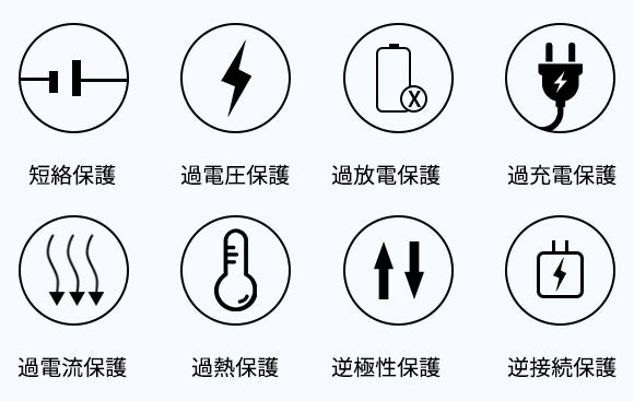 ▍8つの保護回路内蔵、長時間安心してご利用いただける