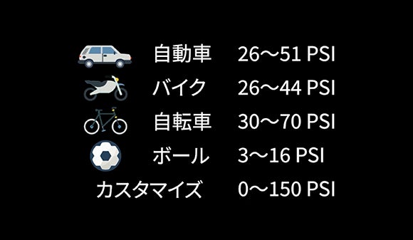 また、タイヤの内圧も測定できるので、走行前に「JCTC-LC01」でチェックしてより安全に走行できます。