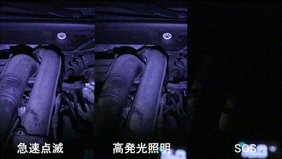 高発光照明・SOS・急速点滅の3つのモードを搭載。LED照明ライトとしてお使い頂けるので、夜間も安心して作業できるだけではなく、突然のトラブルや災害時にも活躍可能。