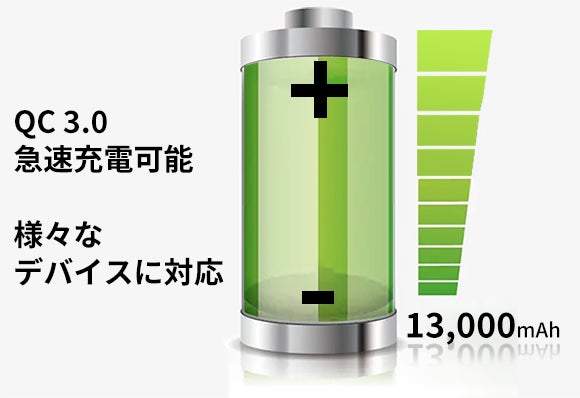 ・13000mAh大容量モバイルバッテリーとしても使用可能。