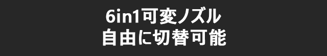 6in1可変ノズルで噴射モードを簡単に切替可能!ノズルを回すだけで、用途に合った噴射モードで楽々洗浄!