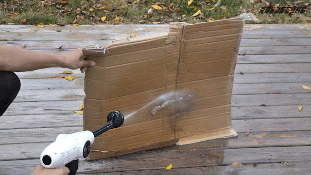 その圧倒的な水圧は薄めの段ボール程度であれば打ち抜けます。