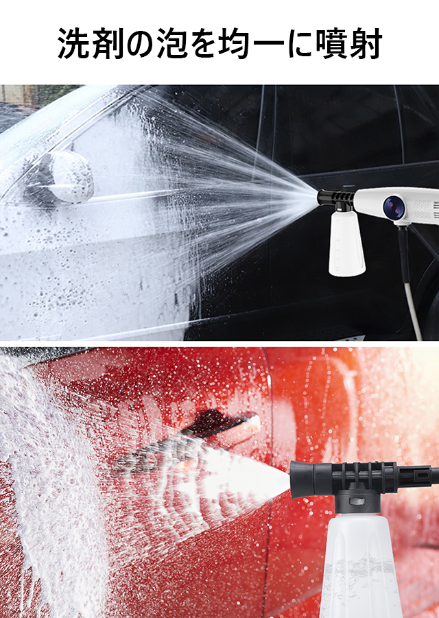 「LF-CW09」は、付属の洗剤ポッドに洗剤を適量入れて洗剤の泡を均一に噴射できるので、洗車に大変便利です。