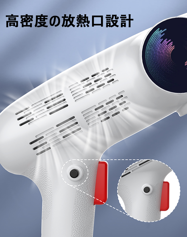 また、高密度の放熱口のデザインにより、洗浄機の内側と外側の空気の循環が高速化されることで、効率良く本体を冷却できるため、使用中に熱くなりません。