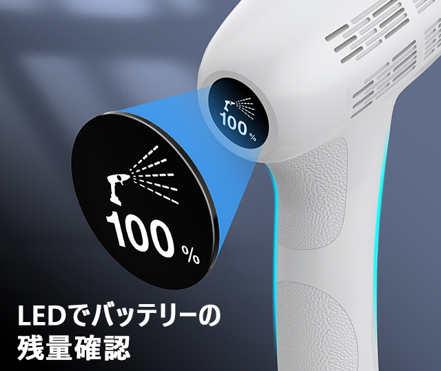 LED表示で電池残量が一目瞭然。バッテリー残量をいつでも把握できます。