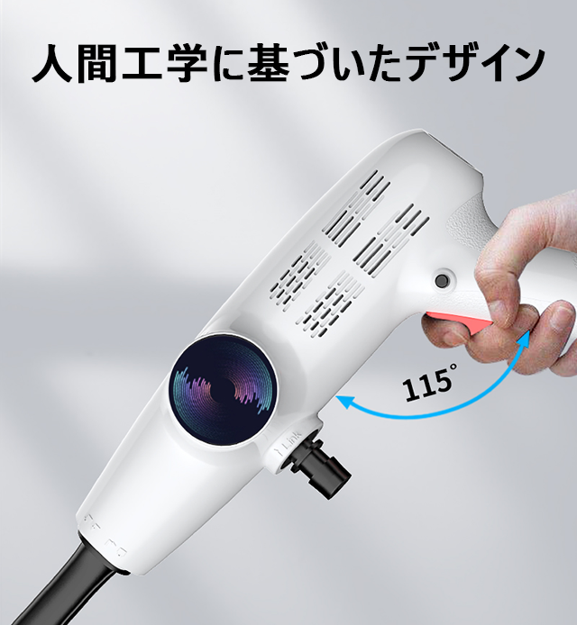 防振設計と人間工学に基づいたピストル型のデザインは使用者の手のひらにぴったりフィットし、手に負担をかけず作業することが可能です。