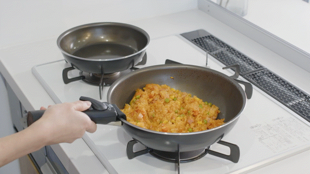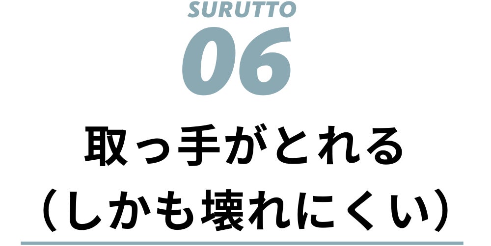 ただでさえ、こびりつきにくいから洗いやすいSURUTTO。取っ手を外せば、まるでお皿を洗うかのように手軽になり、面倒なフライパン洗いを、もはや楽しくしてくれます。