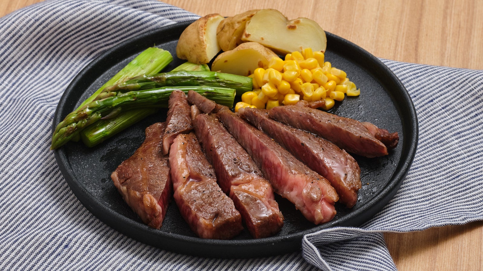 ステンレスの貼り底がない分、フライパン底面にムダな厚みが無くなり、食材に効率よく熱が伝わります。分厚いステーキ肉もおいしくキレイに焼き上がりました。