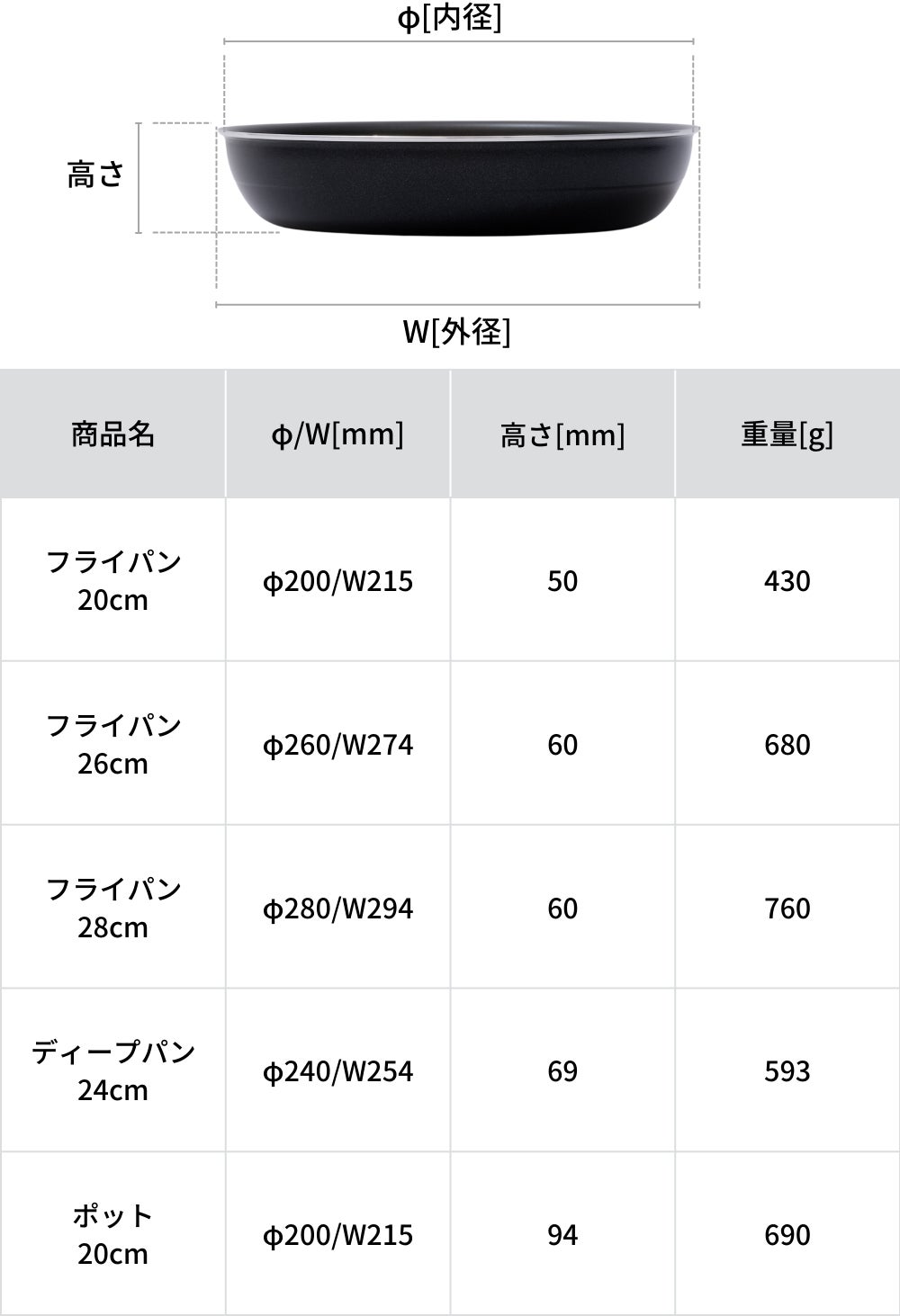 【単品】フライパン 20/26/28cm(※取っ手は別売り)