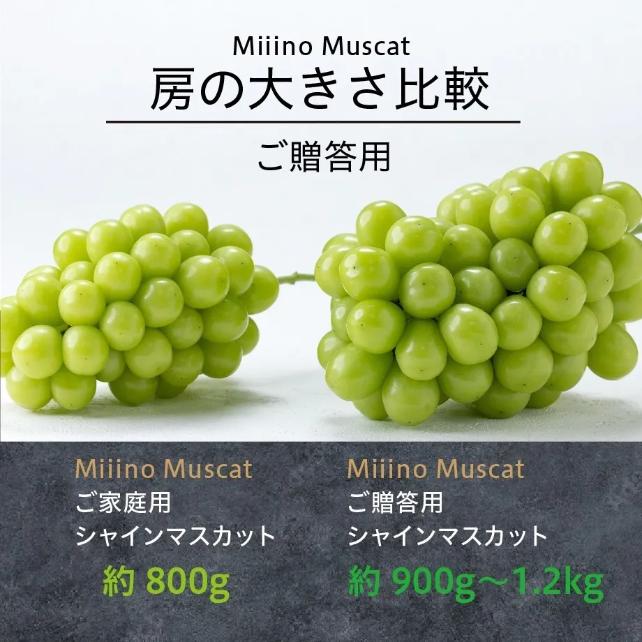 MiiinoMuscatは800g以上と、市場では出回らない超大房のシャインマスカットを栽培しています。