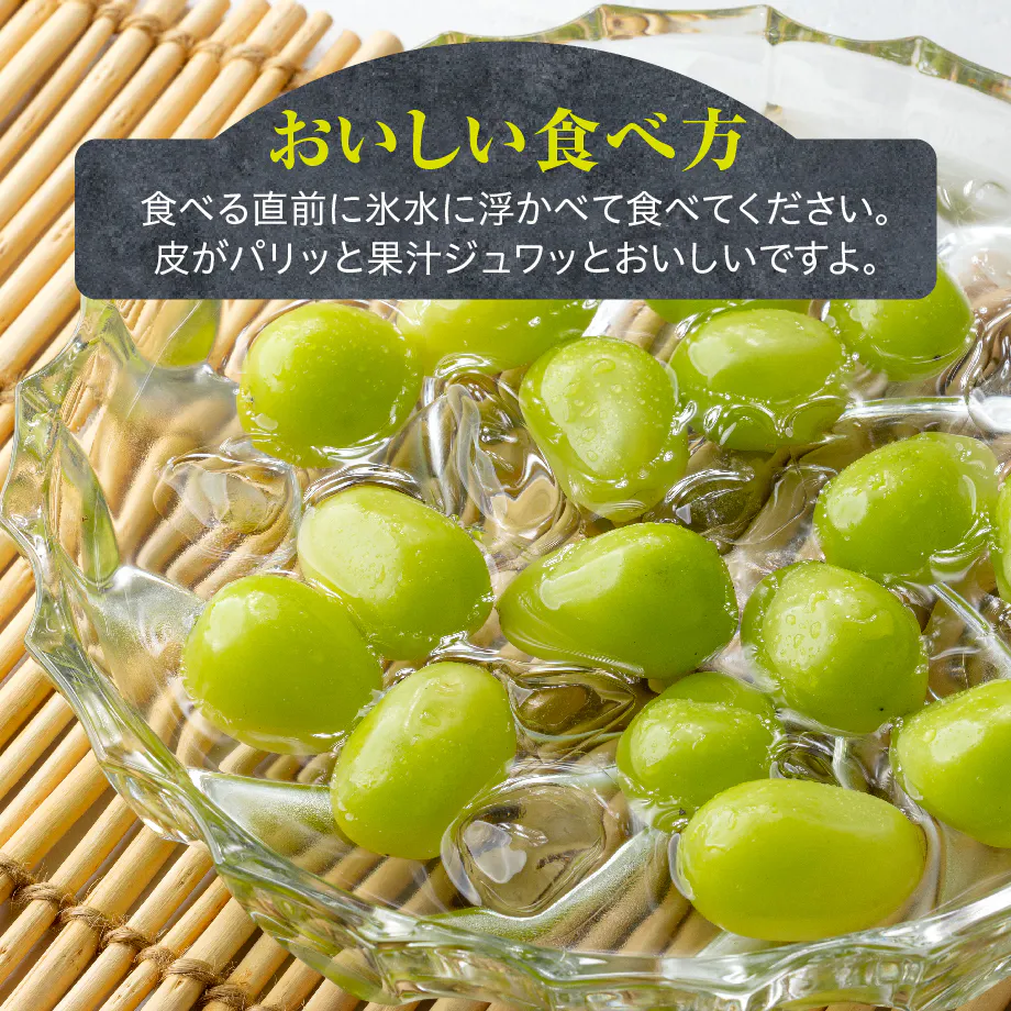 食べてください。シャインマスカットは適度に冷やすと身が締まり、甘さが引き立ちます。