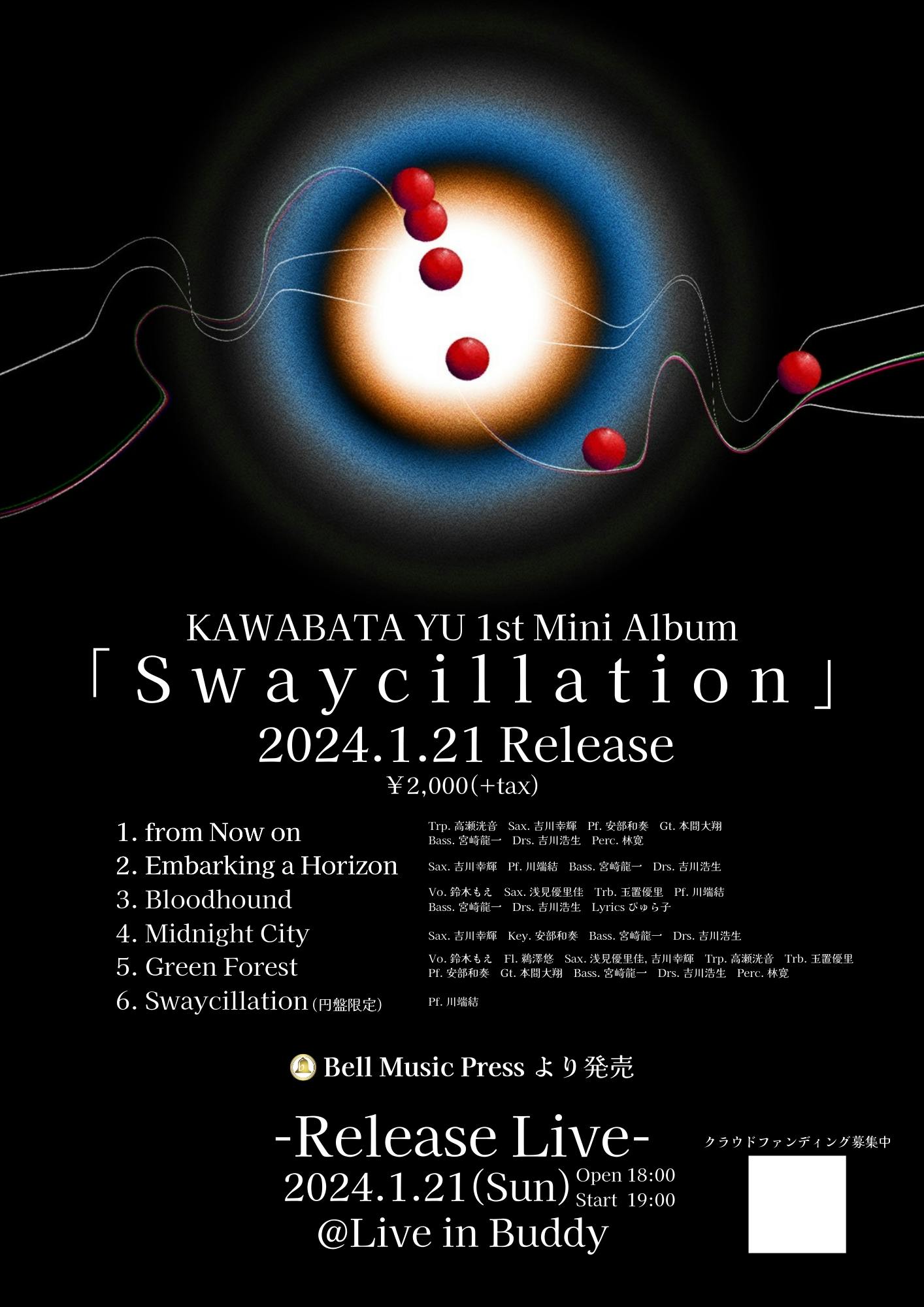 この度は、ミュージックストア・ジェイ・ピーさんが保有するレーベル、ベル・ミュージック・プレスより自身初のアルバム「Swaycillation」を発売することとなりました!全6曲収録のJazz Mini Albumとなっております。SwingやBalladeはもちろん、Contemporaryといったジャンルにも挑戦しました!