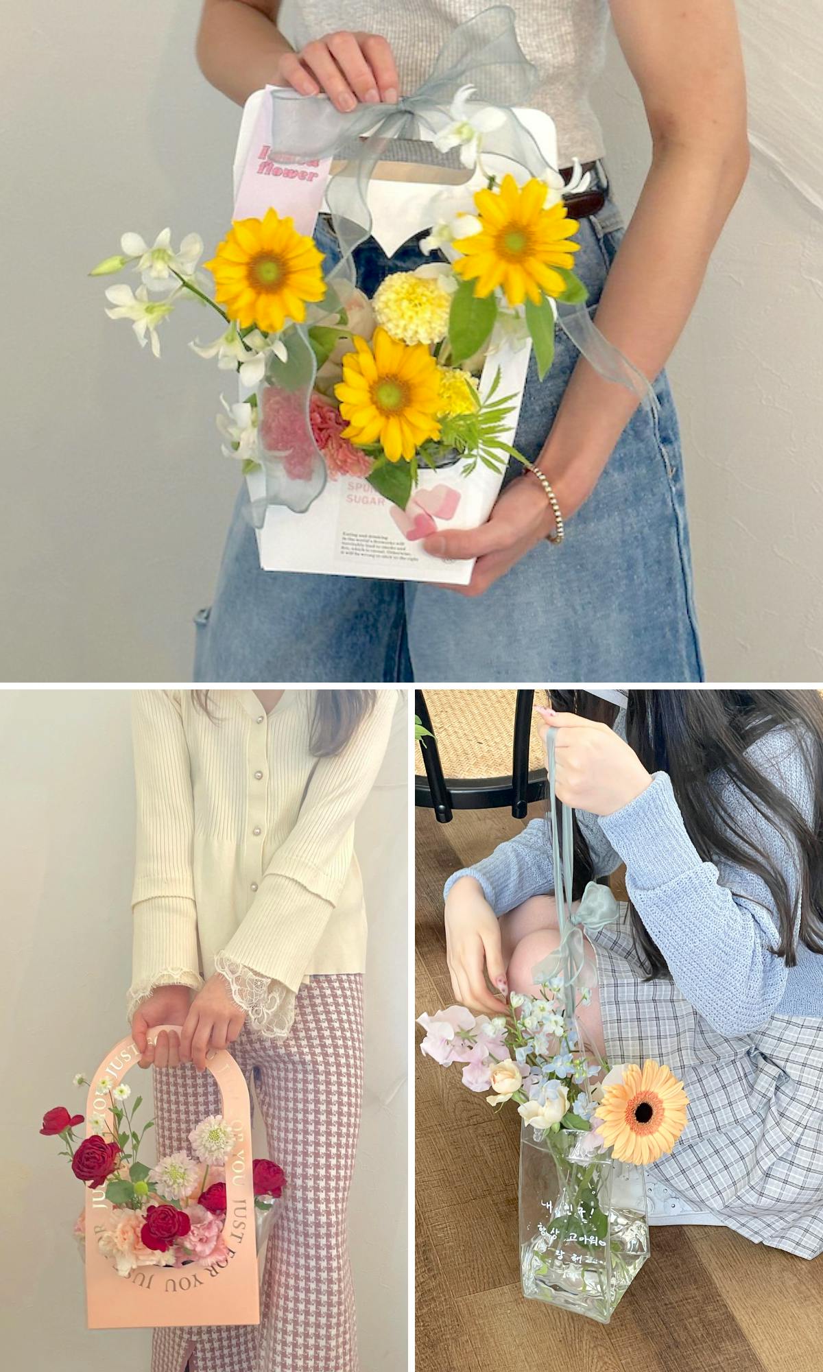 韓国で流行っているフラワーバックもオススメです!いつもと違うお花の贈り方、してみませんか?