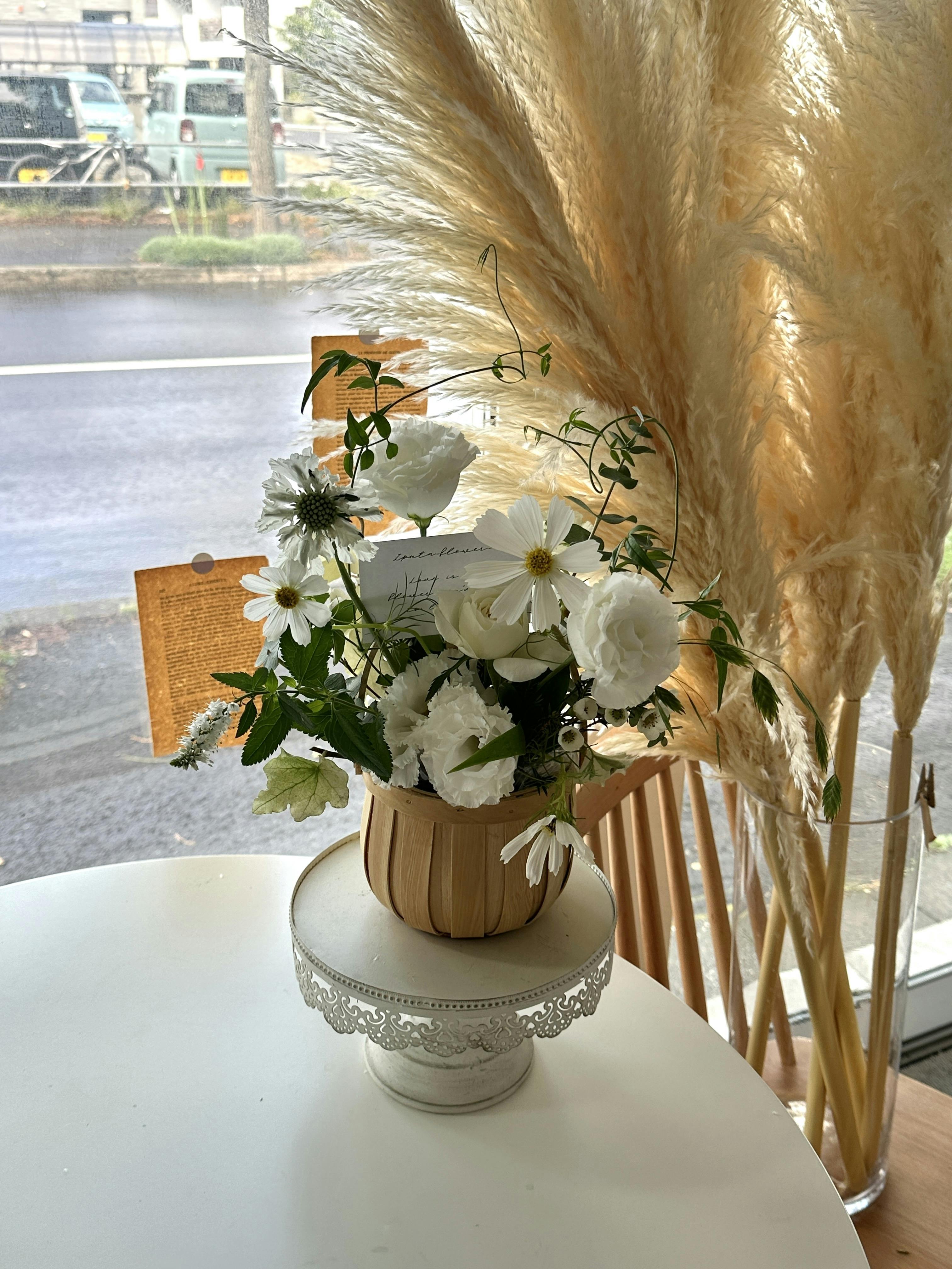 カフェでオシャレな写真を撮ったりするのが大好きな私は、そうしたカワイイ空間を演出するようなお花を作りたいし、カワイイ空間で素敵な時間を過ごすのが好きな人たちに素敵なお花をお届けしたい!という思いでお店を運営しています。
