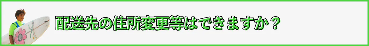 A:住所変更の受付はプロジェクト終了までとさせていただきます。配送先の住所変更は「「マイページ(右上のアイコン)>支援したプロジェクト>詳細を表示する>お届け先の「変更する」を選択>更新」で行うことができます。それ以降の住所変更については本プロジェクトページにある「メッセージで意見や質問を送る」というリンクから直接ご連絡ください。リターンの発送業務などの観点からプロジェクト募集終了後の変更にはご対応出来かねる可能性がございますので、変更がある場合はお早めにお願いいたします。