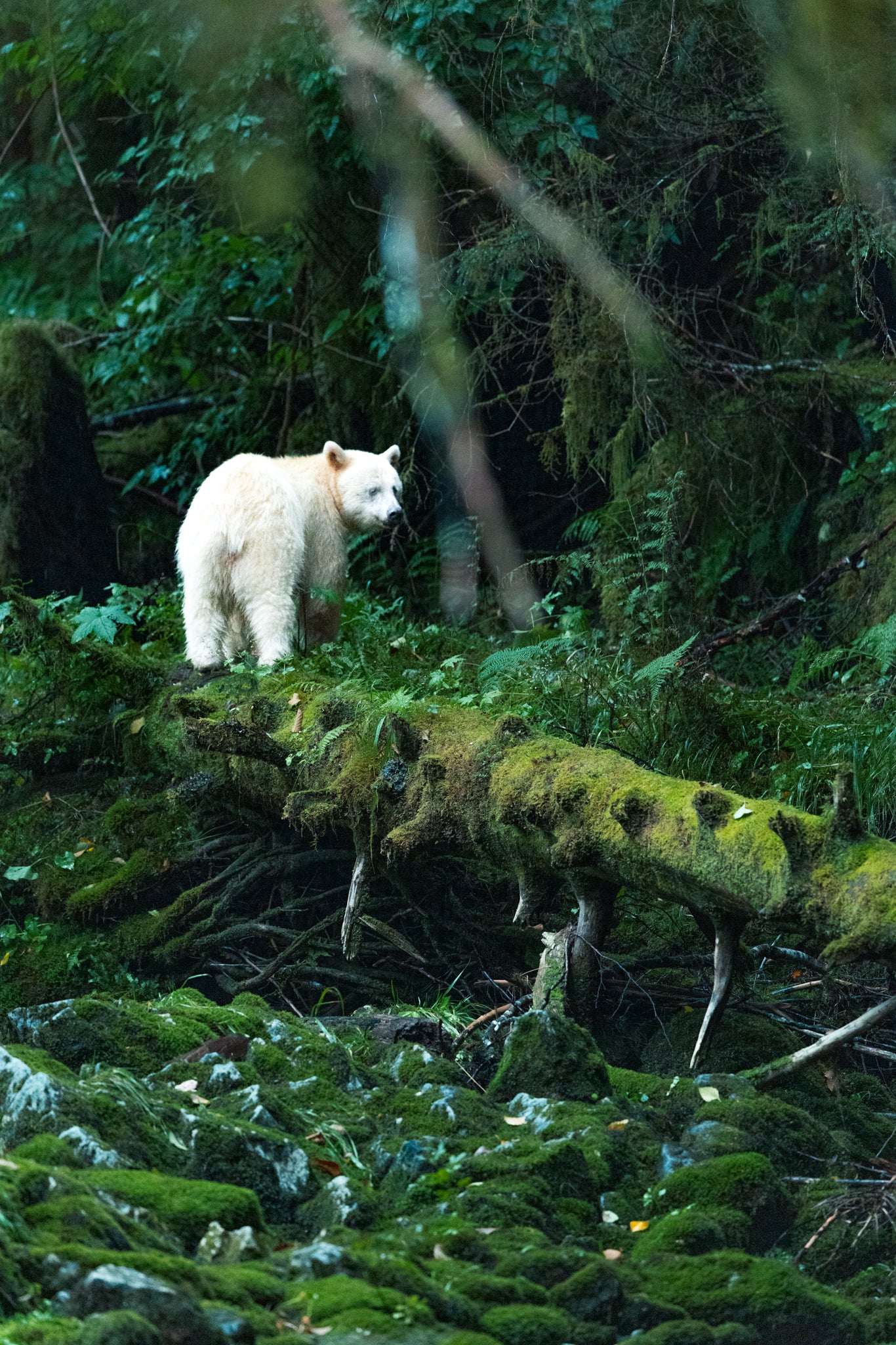 スピリッツベアはシロクマではなく世界で数百頭しかいないブラックベアの変異種で、先住民たちの神話にも登場するのですが、見ても口外しはいけないという神様として崇められてきた存在です。