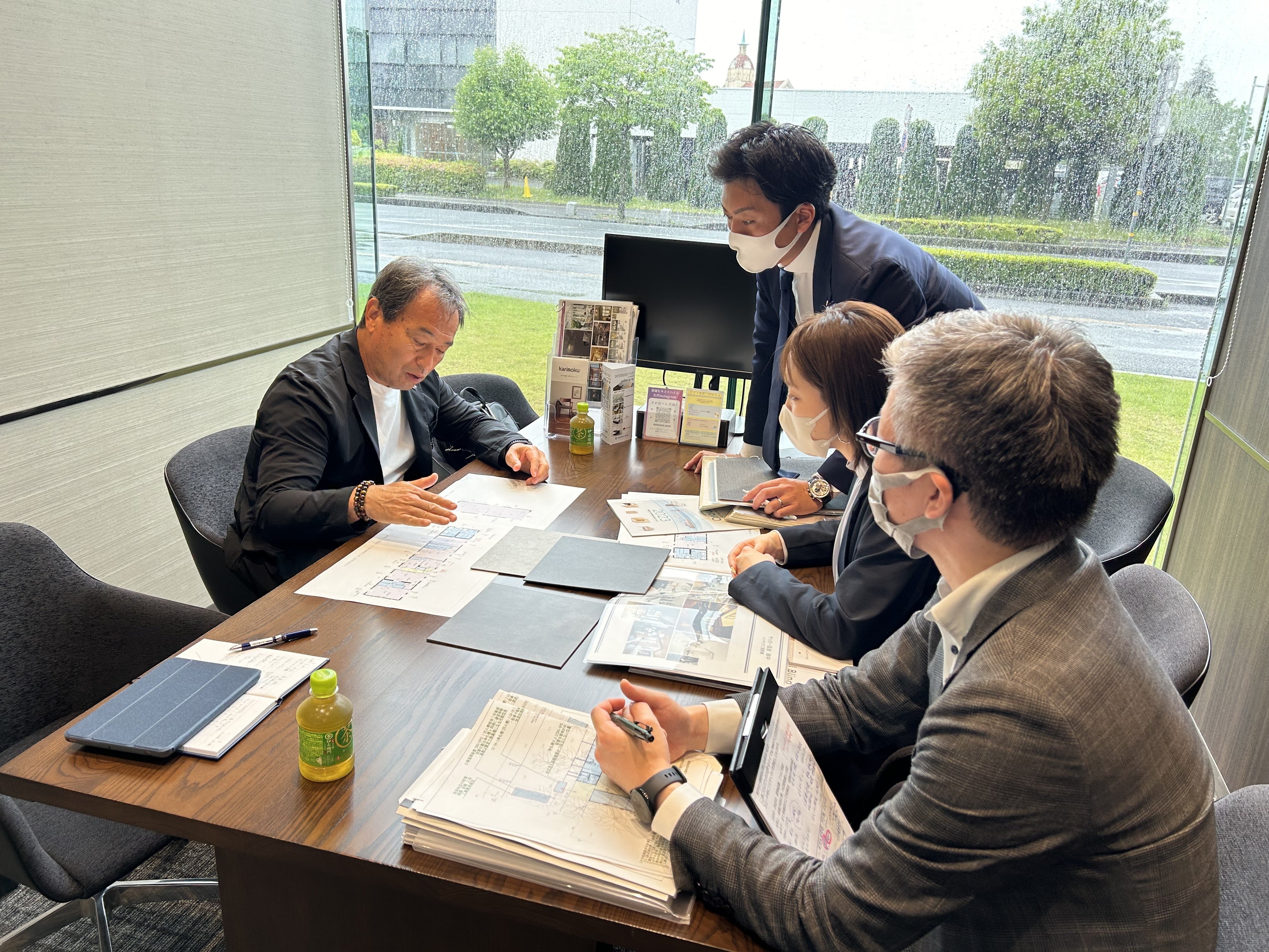 これまでのイメージを基に、建物の配置や外構計画、バリアフリーへの配慮、内装仕様とインテリアデザインなどなど、訪れた方々の利便性を考慮しながら、細部にわたり2時間を超えるミーティングとなりました。時間が足りず、まだまだ検討すべき部分はたくさんございますが、少しずつ着々と進んでおりますことを皆様にご報告いたします。