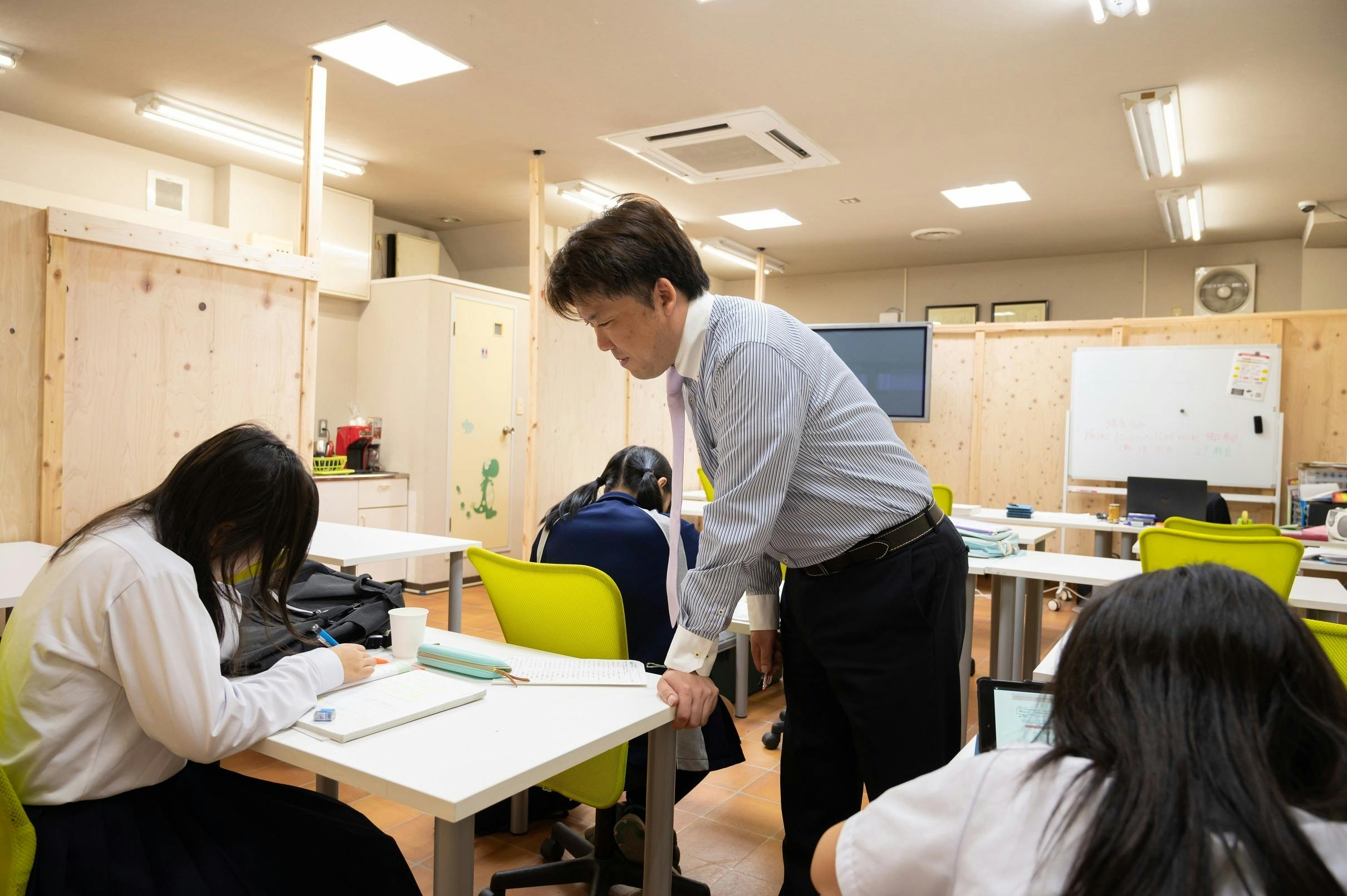 次に、それだけの指導時間となると人件費がかさむのでは?という疑問もあろうかと思います。これは弊社のノウハウでもありますが、最大で10人〜15人の生徒を講師2人で、個別最適化させた指導を行う仕組みがあります。講義と演習を組み合わせた指導で、自習時間と指導時間の区別、時間割を敢えて明確に定めないことで可能となった仕組みです。