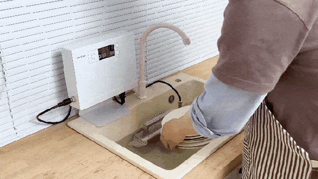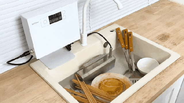 複雑な工事が一切不要!狭いキッチンコーナーにつけ置くだけで、最短5秒で頑固的な汚れをスッキリ落とす。