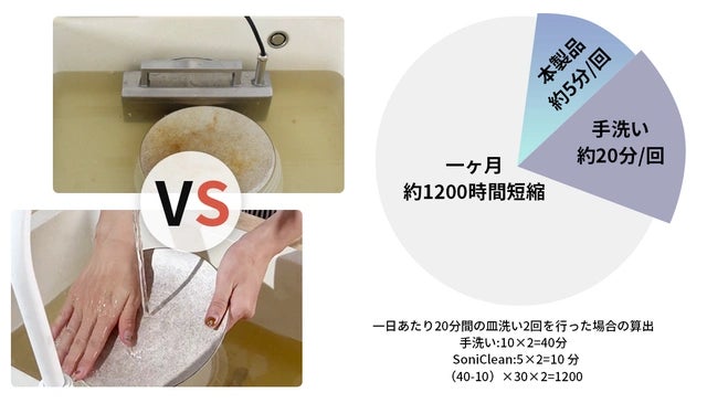 また、ご使用中、SoniCleanの洗浄時間は8~16分しかかからず、従来の洗浄機を1回使用するのに少なくとも120分かかるのに比べて、SoniCleanは水道費と電気費を節約できる上、家事する時間も大幅に短縮!