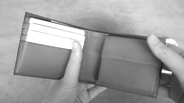 カード、お札、小銭入れにフタがないため、すべてを見渡せます。小銭がどれくらい入っているか思い出したり、小銭ポケットを開いて確認する必要はありません。考えることも減るのです。