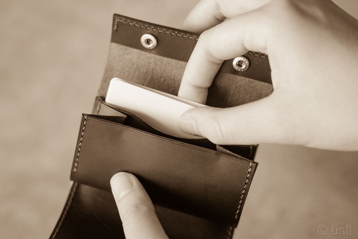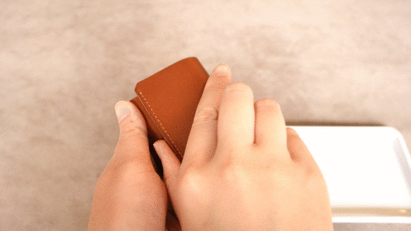 ポケットを開いたり、財布を傾ける必要もありません。ただ差し込むだけ。一瞬で収納できます。