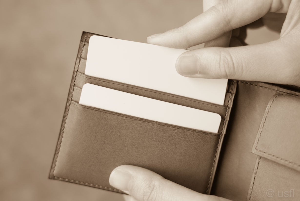 既存のコンパクト財布は、クレジットカードより大きなカードを収納できませんでした。名刺やショップカードをもらったときに、収納に困っていたはずです。