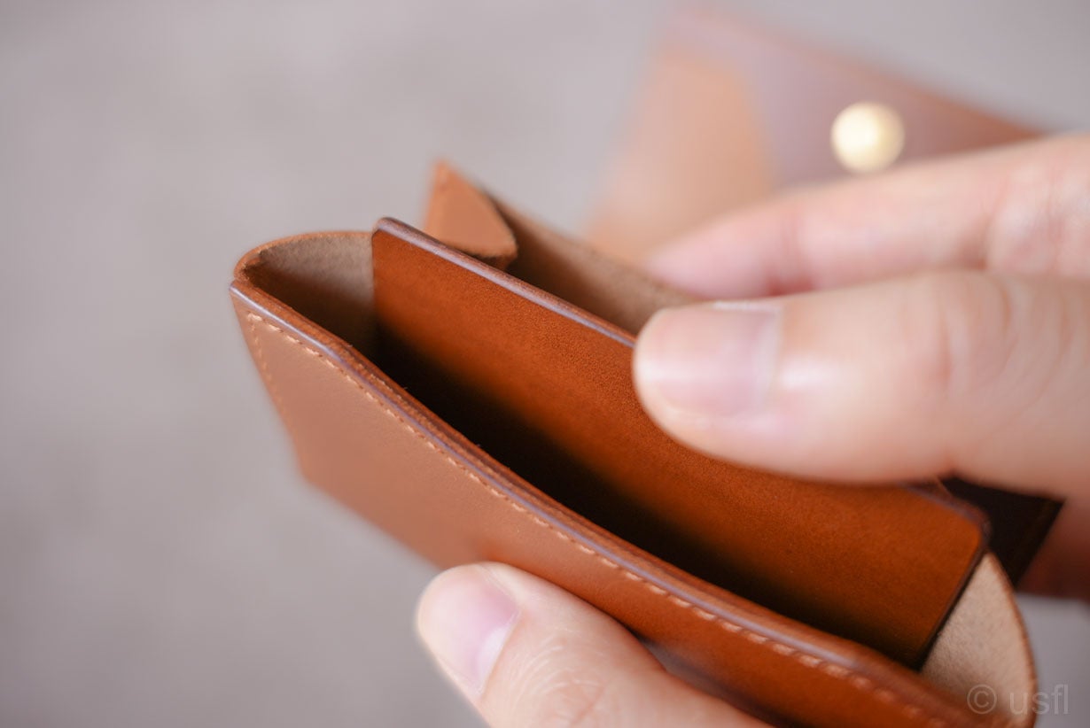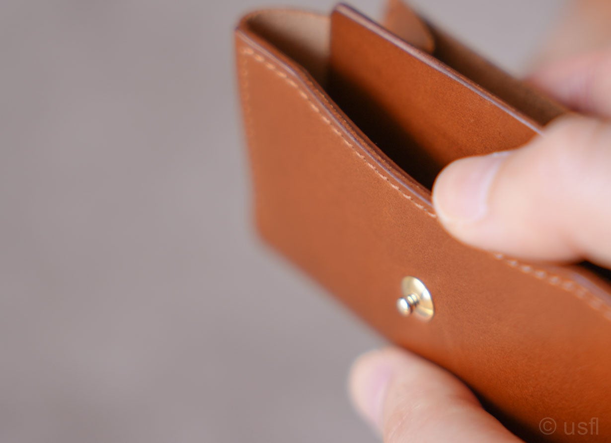 たとえば、カードの仕切りを1枚の革で作ると安価にできるのですが、操作性や耐久性などが犠牲になります。これではusflの製品とは言えません。