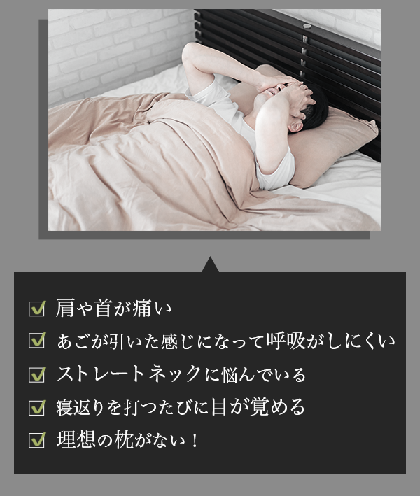 顎を引いたまま寝ると呼吸がし辛い状態が続きます。