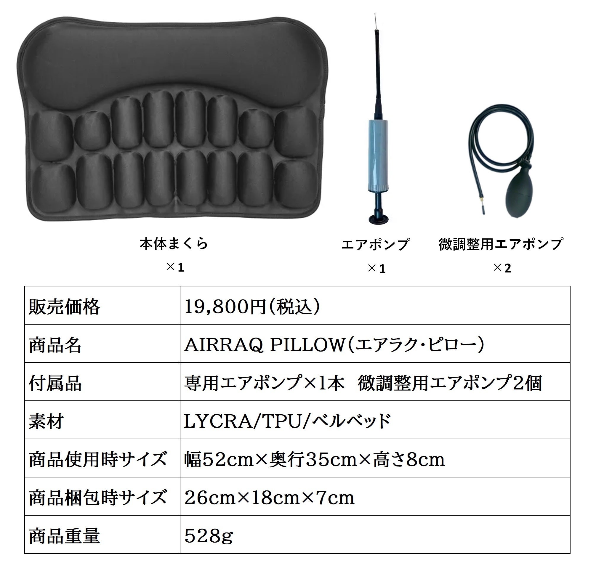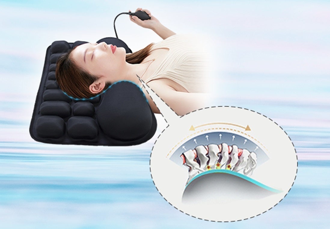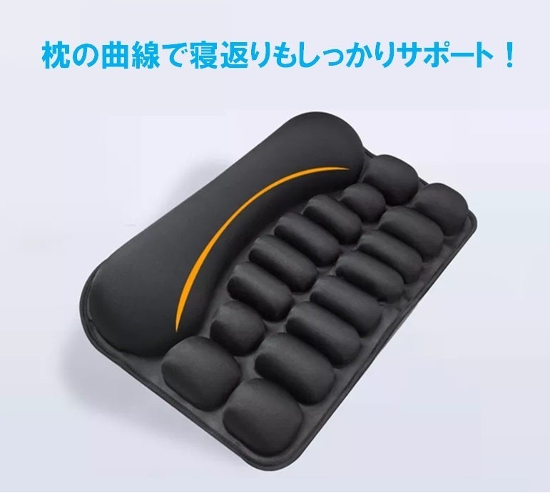 大小合計17個のエアパッドが首と頭部を細かく支える事で様々な体にもフィットします。空気量を調整する事で、横向きや寝返りの多い人にも負担が少ない設計です。
