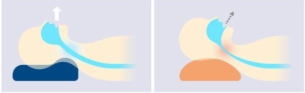 また、お顔が少し上を向く事で普通の枕よりも呼吸もしやすく、心地よく眠れる枕と言えるでしょう。