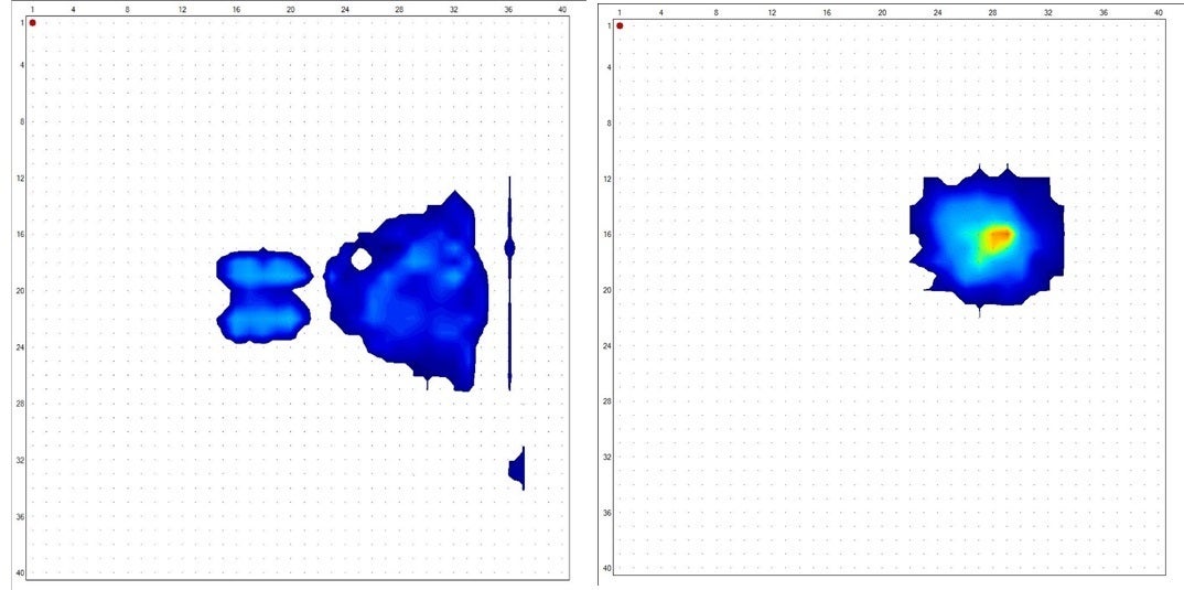 体がまくらに接している領域は172.58cm^2 から 301.61cm^2に75%増えており、首から頭部にかけて体圧分散しています。