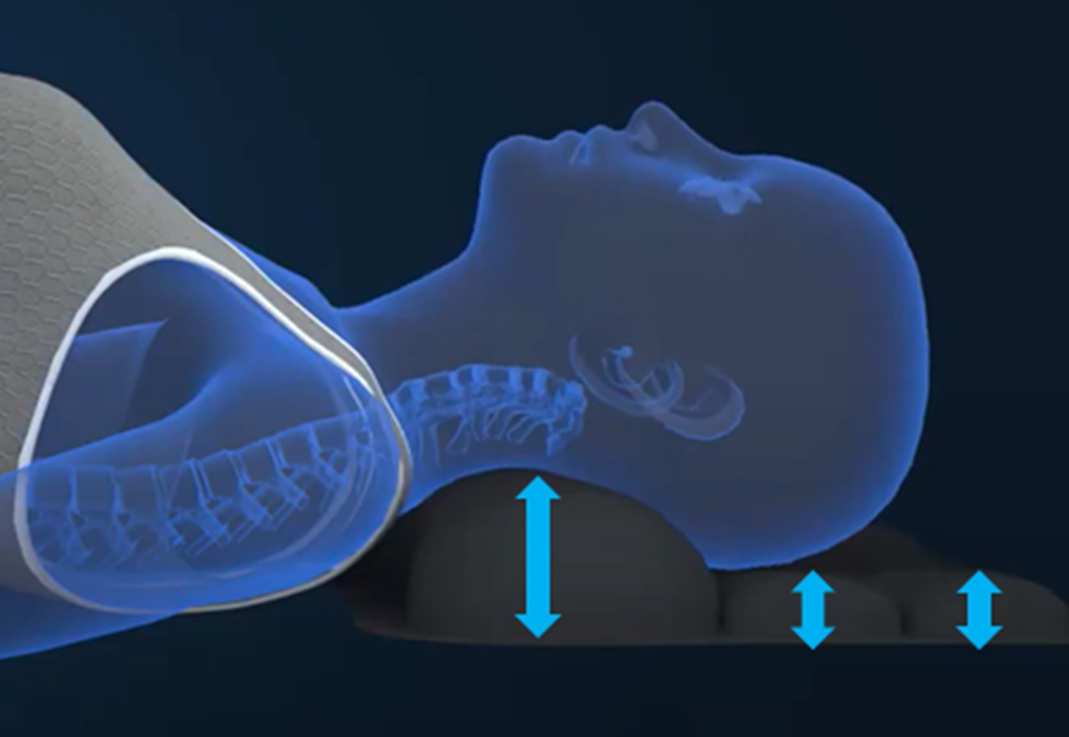 顎が上げる事で「気道確保」にちかい状態で呼吸をサポートします。自然なカーブを維持する事で呼吸が楽になり、心地よい眠りに誘います。