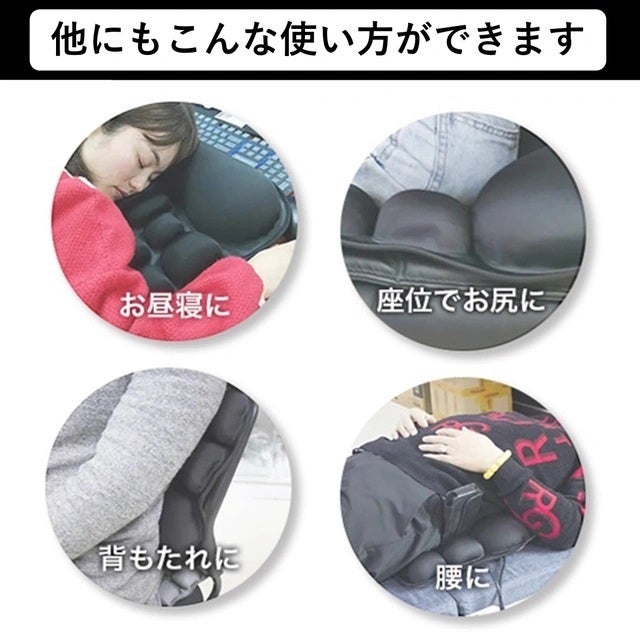 睡眠時に腰や背中の痛みに悩まされている方は、腰が浮いて隙間ができている事で筋肉に負担がかかっている事が原因かもしれません。AIRRAQ PILLOW(エアラクピロー)は空気量を調整して腰や背中にも使えます!