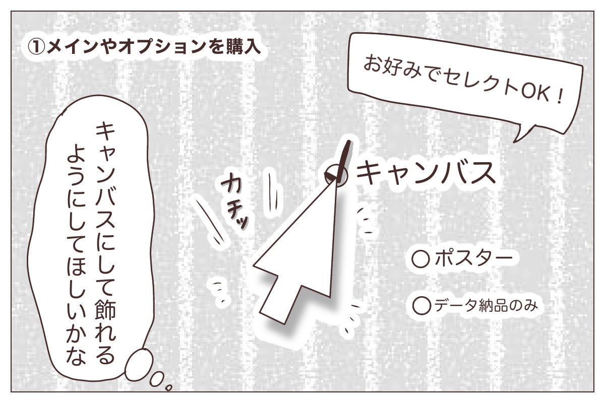 データ納品に追加し、F4サイズのキャンバスや、A2サイズのポスターでのお届けも可能です。