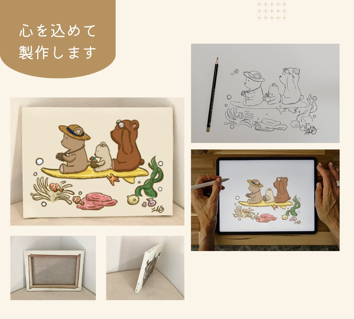 今回は、全てオーダーメイドでの製作となりますので、製作させていただく絵は世界に1つしかないです。