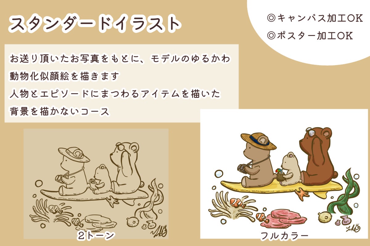 頂いたエピソードとお写真をもとに、人物をゆるかわ動物化したイラストを描きます!
