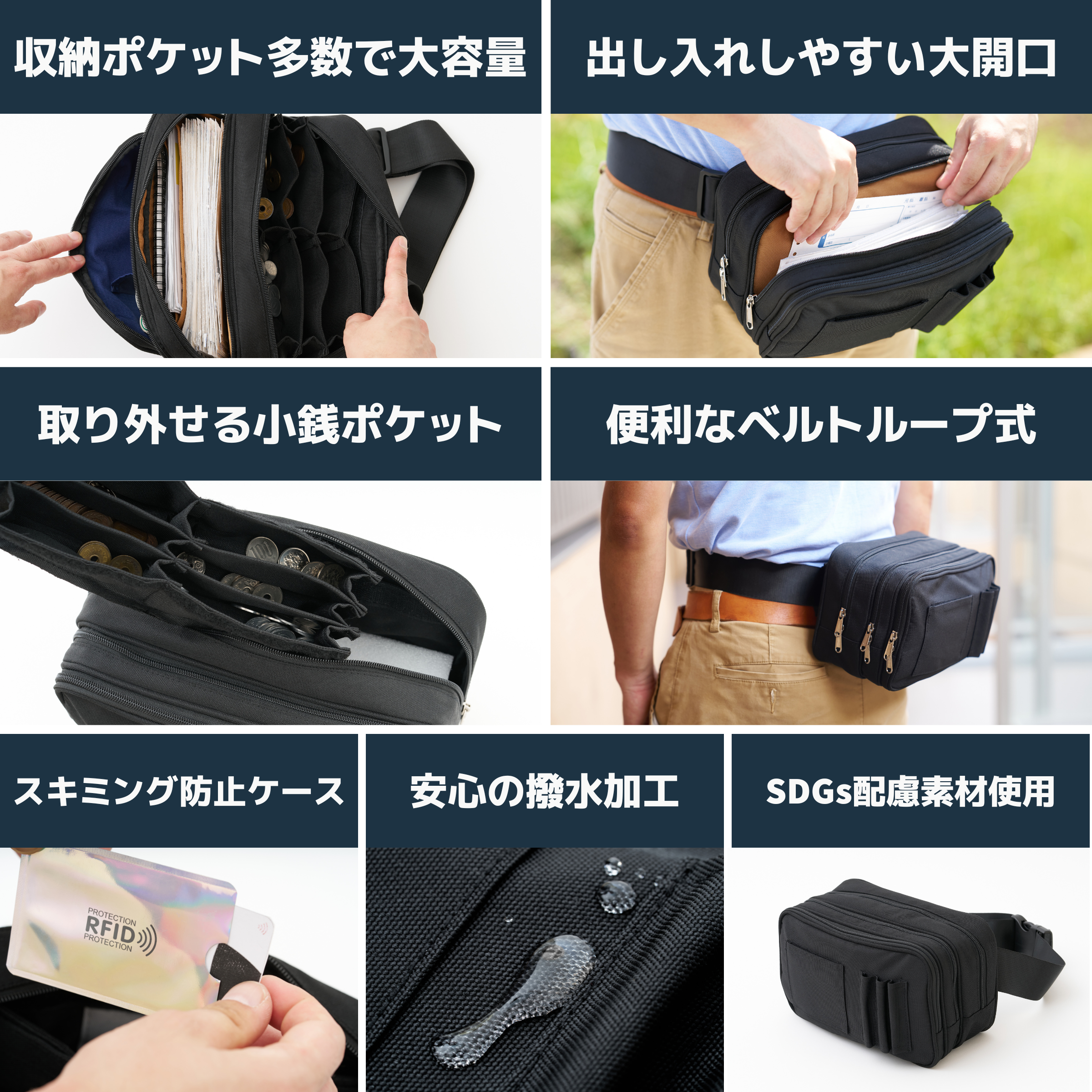 宅配業務の代引き、着払い、集金作業の効率性向上のために現役配送業者によって開発された大容量の業務用ウエストバッグ「レジポーチ」がCAMPFIREで初登場!特別価格で先行販売します!