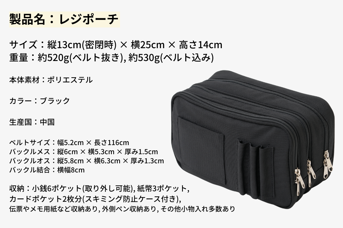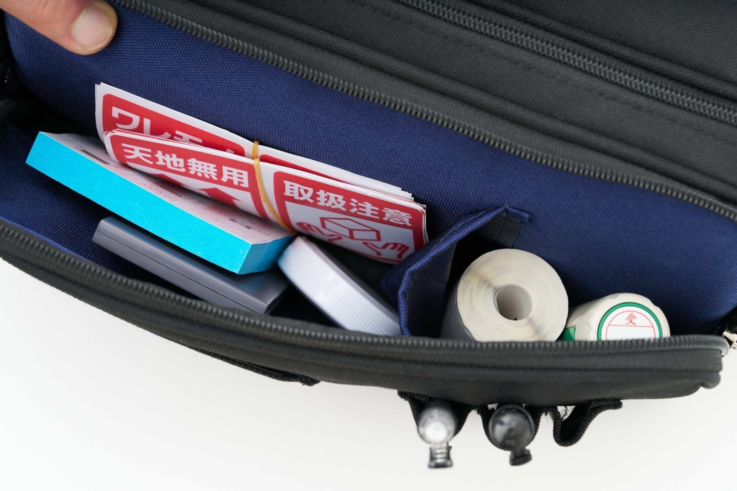 宅配業者向けウエストバッグ『レジポーチ』の最大の魅力は、多数のポケットによる収納力!