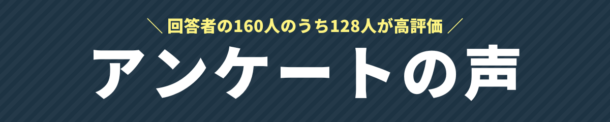 また、アンケートヒアリングを実施。回答者160人のうち128人に高評価をいただきました。(高評価率80%)