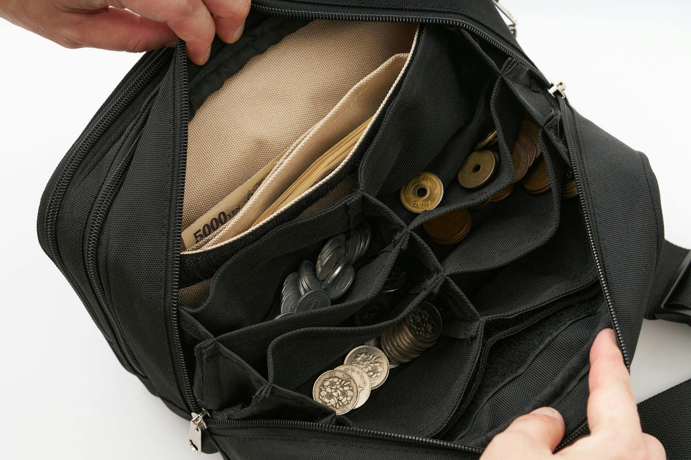 さらに、バッグから取り外せるので小銭の集計にも苦労しにくい設計になっています。