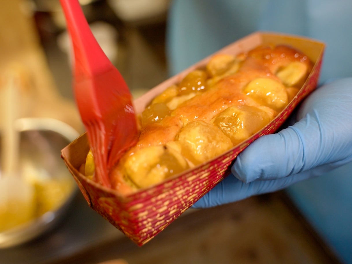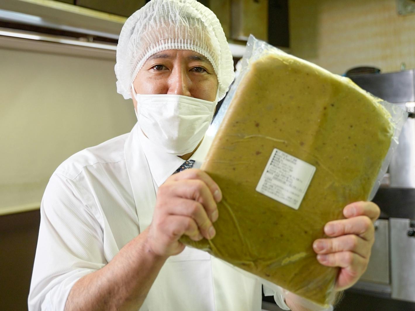 パウンドケーキにおける「ほぼ栗」を追求をしました。そのため、特に生地に栗ペースト分量を多くする方向で商品開発を進めました。当初、焼きたてのパウンドケーキは順調に仕上がったものの、冷凍保存することで、栗の影響もあってか水分消費が激しく、ぱさつきやすい問題が発生しました。栗パウンドケーキでありながらもしっとり感も表現するため、試行錯誤することになりました。生地に混ぜるペーストの量を調整し、保存、冷凍を繰り返し、最適な状態を探る日々。結果として、最高の生地のバランスにたどり着き完成させることができました。