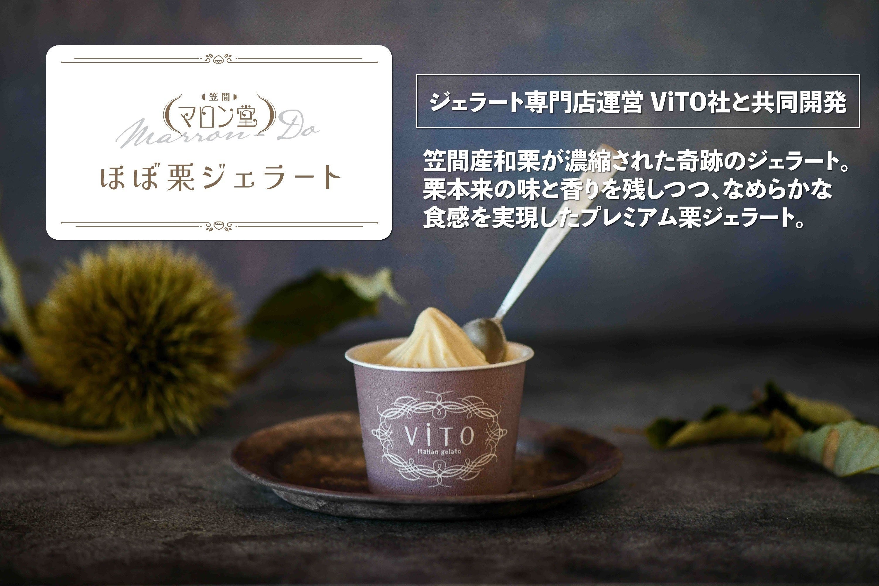 ジェラートとしては異例となる量となる「栗」が加えられた規格外のジェラート。渋谷109にも出店されているジェラート専門店運営のvito社との共同開発により完成したマロン堂オリジナルジェラートです。栗本来の香りと味をしっかりと残しつつ、ジェラートらしいなめらかな舌触りを実現した奇跡の栗ジェラートです。